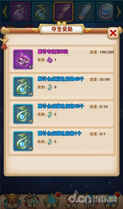 6、夺取宝物的次数越多,可以领取的奖励也就越多,奖励有紫色的宝物碎片,还有大量的经验宝物,非常丰厚呢。