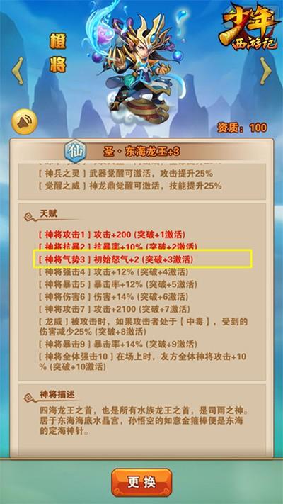 当武将突破至+3时,武将可获得初始怒气+2的效果。
