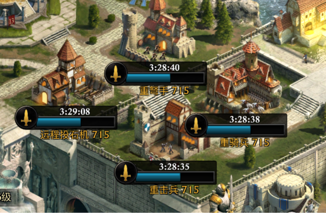 攻城类型:步25%,骑25%,弓25%,车25%。其中战士跟长矛兵比例2:1,重骑跟轻骑比例2:1,弩手跟射手比例2:1,投石跟冲车比例2:1。这是我认为前期到中期的完美搭配(当然习惯与经验是看个人...)。