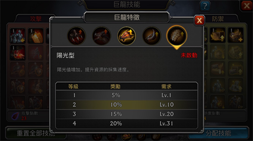 如果是好战玩家,当然就是走攻击型啦!但是侵略别人是会有报应的(误),攻击型的巨龙能获得的加成比例比防御型的要来的少,而且完全是减半!所以要走这条路必须要有觉悟,非得比别人强不可!否则当想累积资源的时候又比别人慢,只会每况愈下。