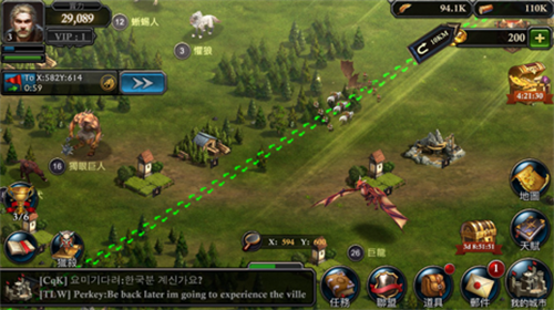 「攻击」指的就是攻击王国地图上的敌人以及怪兽,而「防御」可以靠占领附近的空的资源产地来获得。