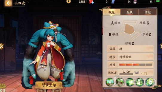 巨腕与弱气少女,全新式神二口女即将上线 青色长发高高盘起,一双水灵灵的赤色眼睛惹人怜爱,脑后虽有着一对巨手模样的可怕妖灵,但依旧有众多阴阳师大人们喜爱着这位生性善良的式神。二口女将会现身本周百鬼弈玩法中,各位阴阳师大人有机会随机到这个式神。在平安京中,这位定位为射的可爱式神,拥有着十分出色的对线消耗能力,独有超远距离大招让她能安全的收割敌人的生命,推荐走下路。