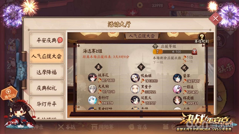 盛夏应援开启,谁将C位出道?《决战!平安京》应援大会正在火热进行中,你会pick哪一位式神呢?更多精彩内容,更全活动预告,请关注《决战!平安京》官方网站、官方微信。