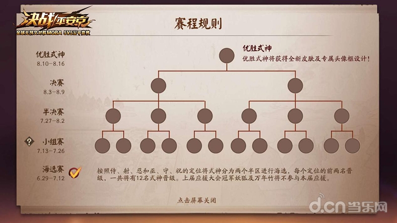海选赛将从6月29日进行至7月12日,平安京每周都将为三个定位的全部式神分组进行海选,每个定位的前两名将获得晋级资格,两周后共有12名式神华丽突围。
