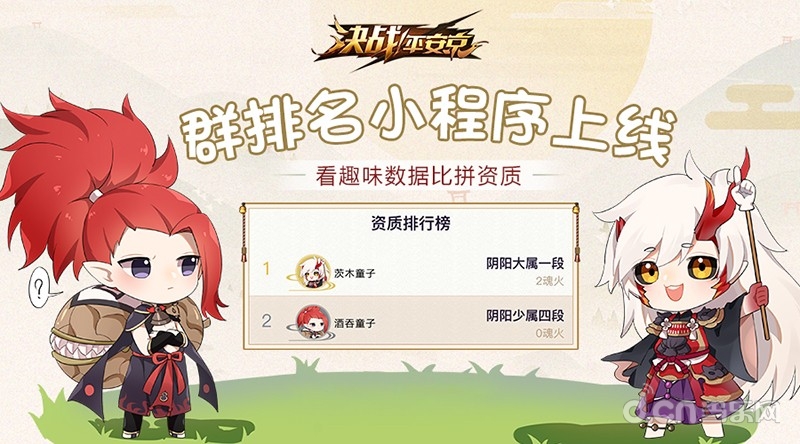 比拼资质排行,寻找同游乐趣,《决战!平安京》群排名小程序全新上线,体验小程序,查看群好友数据,来一场战绩的较量吧!