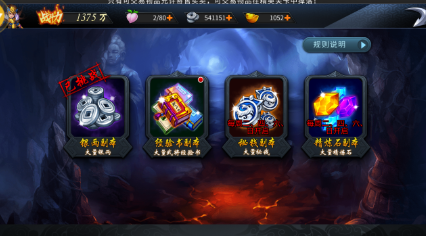 日常副本分为银两、经验书、秘钱、精炼石四个副本。