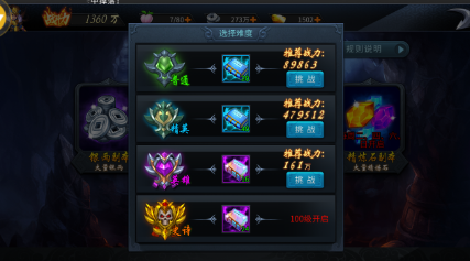 每个副本暂分为4个级别,按角色等级解锁对应副本级别。每个副本每天只可选择一个难度挑战一次噢!