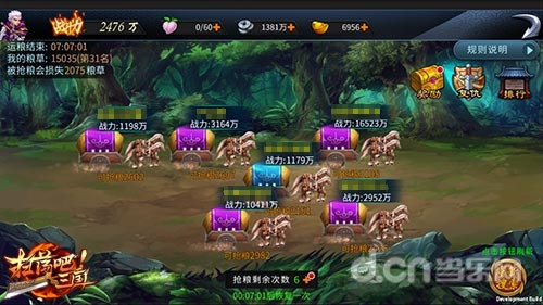 而在考虑选择何种培养方式之时,主公们就不得不考虑进行武将培养所需要的培养丹以及武将将魂。在《扫荡三国》当中,培养丹这一资源主要可以通过“抢夺粮草”征讨玩法来获得;而武将将魂,则可通过挑战主线任务系统之中的相应副本关卡来获取。