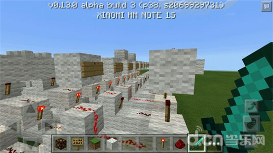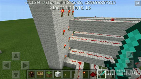 由于mojang在0.13.0测试版并没有添加中继器所以我们可以用两个红石火把这样摆放来代替(终于知道中继器为什么长那样了)