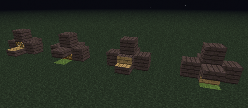 对于Minecraft 1.4及以后的版本,你可以简单地用几个楼梯放置成|____|形状来当作沙发,因为在这些版本中转角处的楼梯可以自然变成"拐角楼梯",看起来更自然。