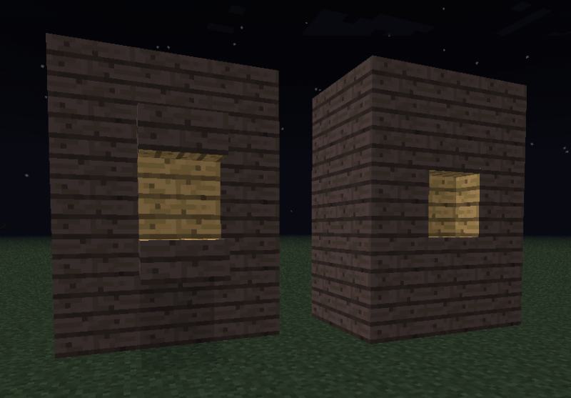 还有另一种装饰性的灯:把一个萤石方块除了一个面之外都挡住,然后在剩余的那个面上放一个台阶。这样做的结果是一小块白莹莹的光,但它并不能作为一个实际的光源来使用,而只能仅仅为了装饰效果。同样地,你也可以用楼梯来代替台阶来实现这个功能。