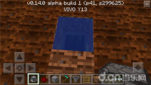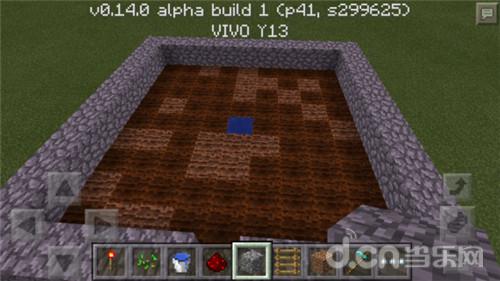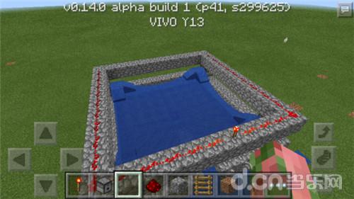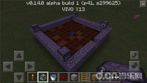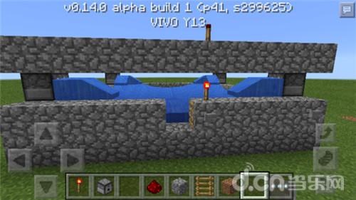 第二步,选择一种材料把它围起来,生存模式可以用原石,用半砖也可以,只要能起到阻挡水流的作用就行。