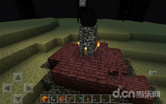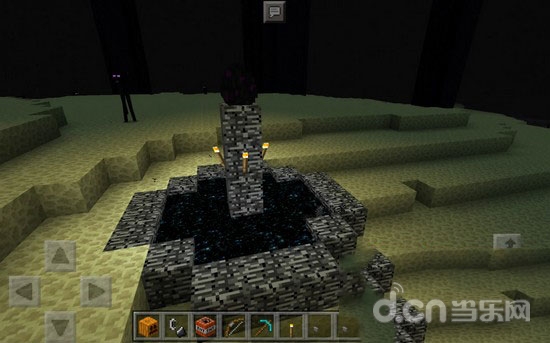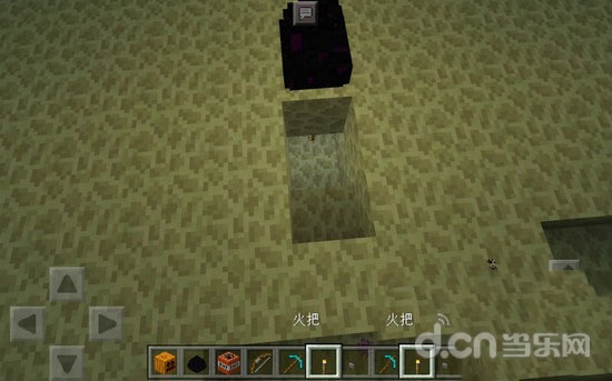 3.第一种方法需要使用火把,触碰龙蛋,让龙蛋瞬移到末地方块上,然后将龙蛋下方两格的方块挖掉,换成火把。