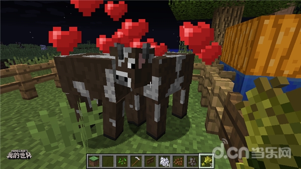 拿着2个小麦,在两头牛身上分别右键使用一次,