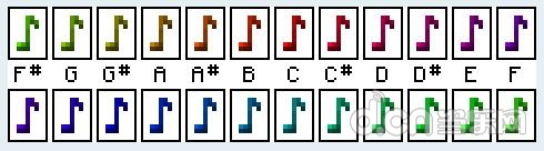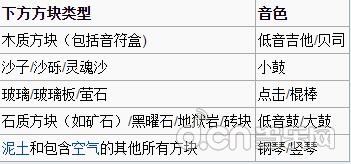 同样的,音符盒的音色和音符盒下方的方块有关: