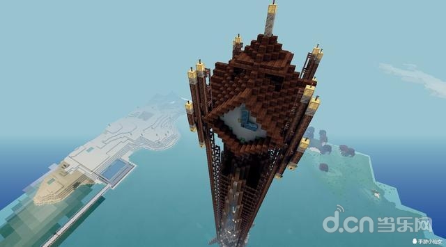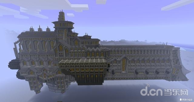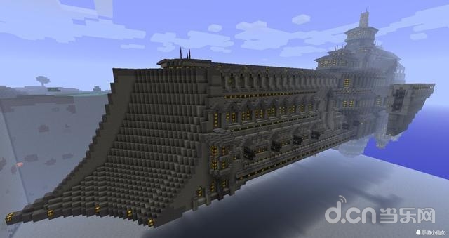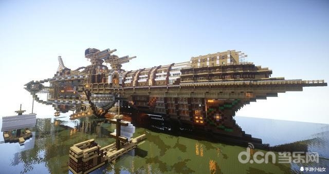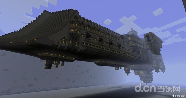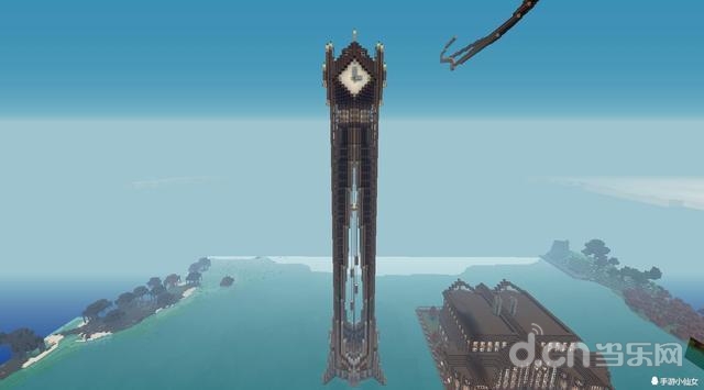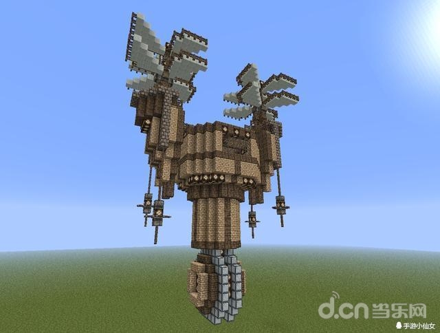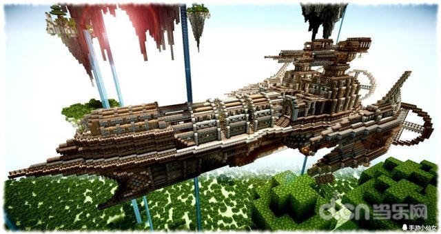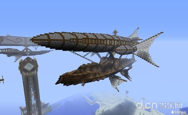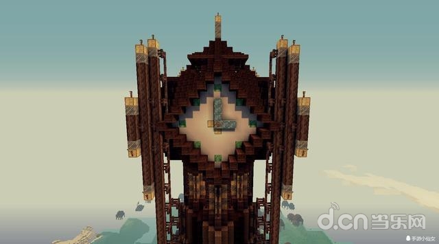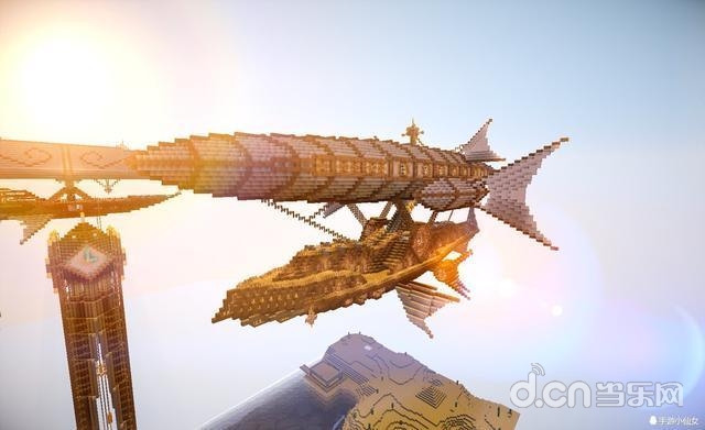 为了凸显这款走蒸汽朋克风的飞船,除了加光影,大神还特意搭建了一座高耸入云的时钟。