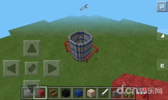 继续 接下来 我们以这个主塔为中心 来对它进行扩建 为了叫大家看的清楚 我用红色羊毛来圈出扩建的地方 注意 一定要错落有致 为了叫大家看清楚楼层 我用青金石把各个楼层标了出来