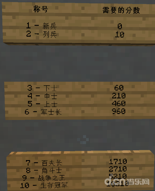 Hypixel的UHC Champions(极限生存冠军)和其他服务器是不同的,Hypixel的UHC Champions是可以购买很多特别的合成,例如一些神器或者高级神器,你也可以选择升级一开始的职业。Hypixel的UHC Champions是通过分数来断定星级的,达到指定的分数(图1)便可以升级星数,杀一个玩家可以获得1分,胜利便可以获得10分。这个游戏一开始会有10分钟的时间让你收集资源来强化自己,10分钟后,便可以开始攻击其他玩家,当然,你也可以选择继续收集资源。PvP开始后,边界将会开始慢慢的缩小。时间到后,存活下来的玩家和队伍将会传送到一个决斗场地进行对战,边界也会开始继续缩小,如果15分钟后依然没有获胜者,比赛将会打平。