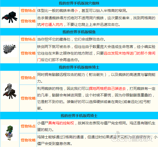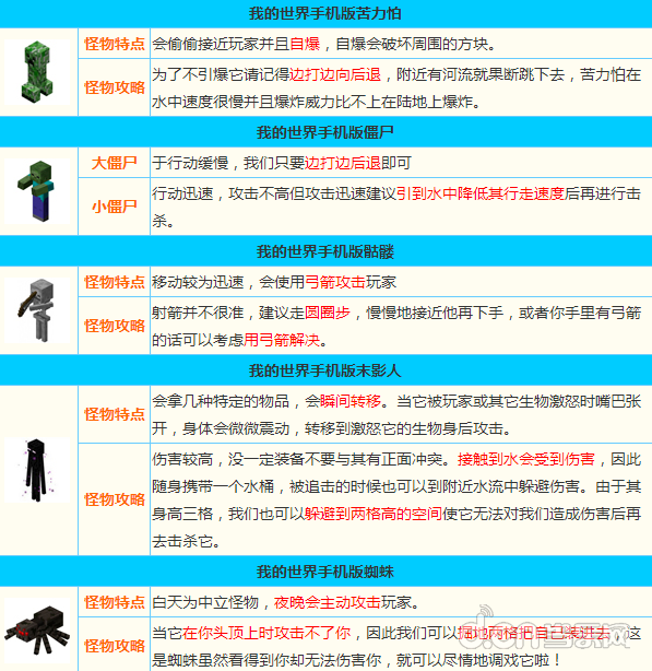 来看看生存中常见的几种怪物,只要明白了怪物们的特点,你会发现其实它们也没有那么难搞定嘛~