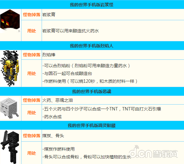 有很多特定的材料都是由怪物掉落的,通过从怪物身上获取资源能让我们的生存拥有更多新奇的工具哦~例如TNT炸弹、骨粉、钓鱼竿!