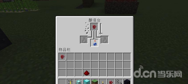 接下来就是合成的问题,我们首先来到酿造台,用在地狱收集到的“地狱疣”和一瓶水来合成粗制的药水。
