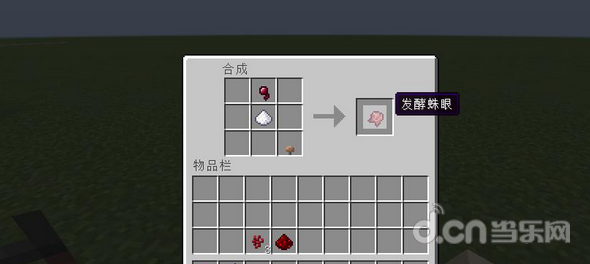 接着我们用刚刚杀蜘蛛收集的蜘蛛眼,再配上糖(用甘蔗合成)、蘑菇这三种东西合成发酵的蜘蛛眼。