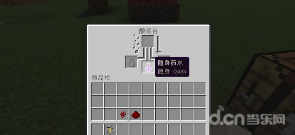 最后用发酵的蜘蛛眼和刚刚的夜视药水合成,就可以获得隐身药水啦。隐身的效果就是这样,隐身药水只会使得玩家本身隐身,并不能让手上的装备或者物品隐身。