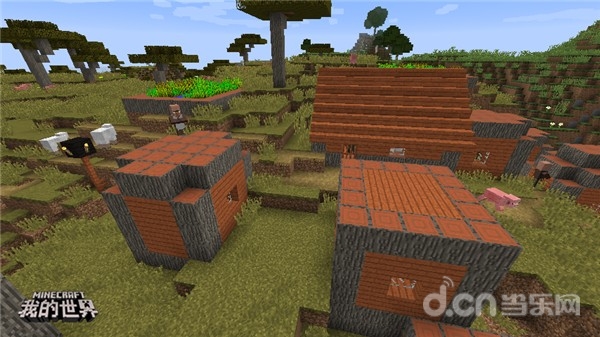 举例来说,草原村落的建筑主要是由橡木、橡木板和圆石建成的。