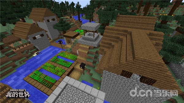 云杉林里的村落,就是用云杉木、云杉木板与圆石搭建而成的了。