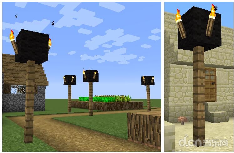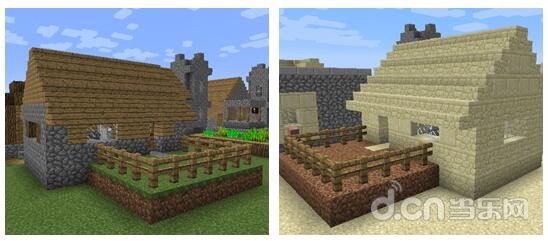 下面给大家分别介绍一下它们,用超平坦世界村庄里的建筑举例~