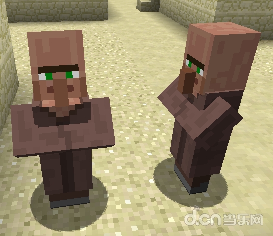 两个农民。农民穿棕色长袍,可以和玩家交易。