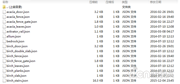 方块模型的拓展名为.json,它们决定了方块的材质和物品的形状,