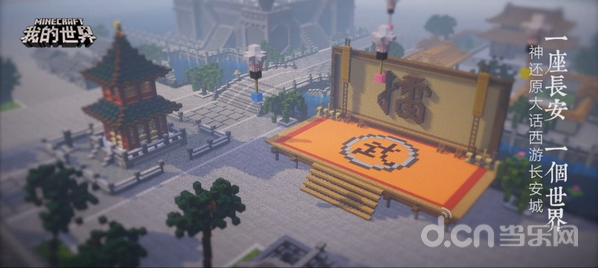 长安城下,喧嚣人烟,多少时光随风,这一次,《大话西游2》联手《我的世界》,为兄弟们还原一座长安城,与诸位见证共同的记忆。使用《我的世界》各类方块搭建而成的集市,长安桥,监天台和擂台,搭配暖色调的光影材质,让《大话西游》玩家在《我的世界》中也很收获满满的记忆。