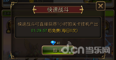 想要更快的获得挂机产出,快速战斗肯定是不二之选,每天玩家都能获得免费的快速战斗次数,所以一定要掐准免费次数赠送时间去快速搜刮金币和经验。当然,如果各位壕们等不及免费次数的话,只要消费少量的钻石就能获得额外的加速哟。