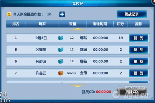 1、点击竞技场排名列表中的玩家进行s挑战,
