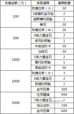 活动内容:活动期间内,累计充值达到指定额度可获得对应奖励