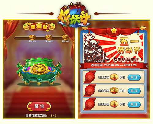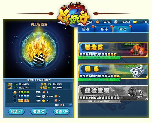 英雄无钱寸步难行,更何况是带领三界英豪的“魔王”呢!在《作妖计》五一福利版中,新上线了高产出的“聚宝盆”、“锻造石副本”玩法。“聚宝盆”开启自给自足的银币产出模式,让玩家从此告别钱荒,告别猎命缺钱的尴尬窘境;法宝“锻造石副本”的开启,可产出法宝培养所需的大量锻造石,助力法宝属性快速提升,进而大增战队实力。