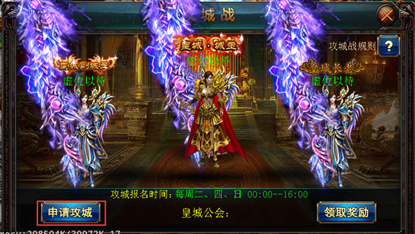 1、 只有公会会长、公会副会长可以在活动界面-攻城战处申请攻城,申请城战需要“攻城令牌”、2000000金币,令牌可以在商城购买