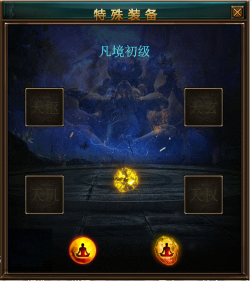 1:特殊装备界面可装备灵魂装备,分别是天枢、天玄、天玑、天权。