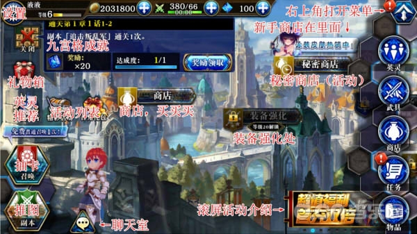 普通商店:别忘记经常光顾,买需要的东西,第一个商店低几率刷出氪金碎片,可以用金币买。