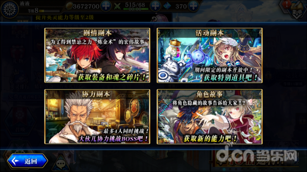 剧情副本:普通模式,即主线。困难模式,每日每图可攻略3次,获得英灵碎片。