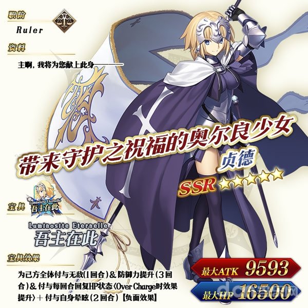 拥有使全队获得无敌效果的强力宝具的从者『★5(SSR)贞德』,