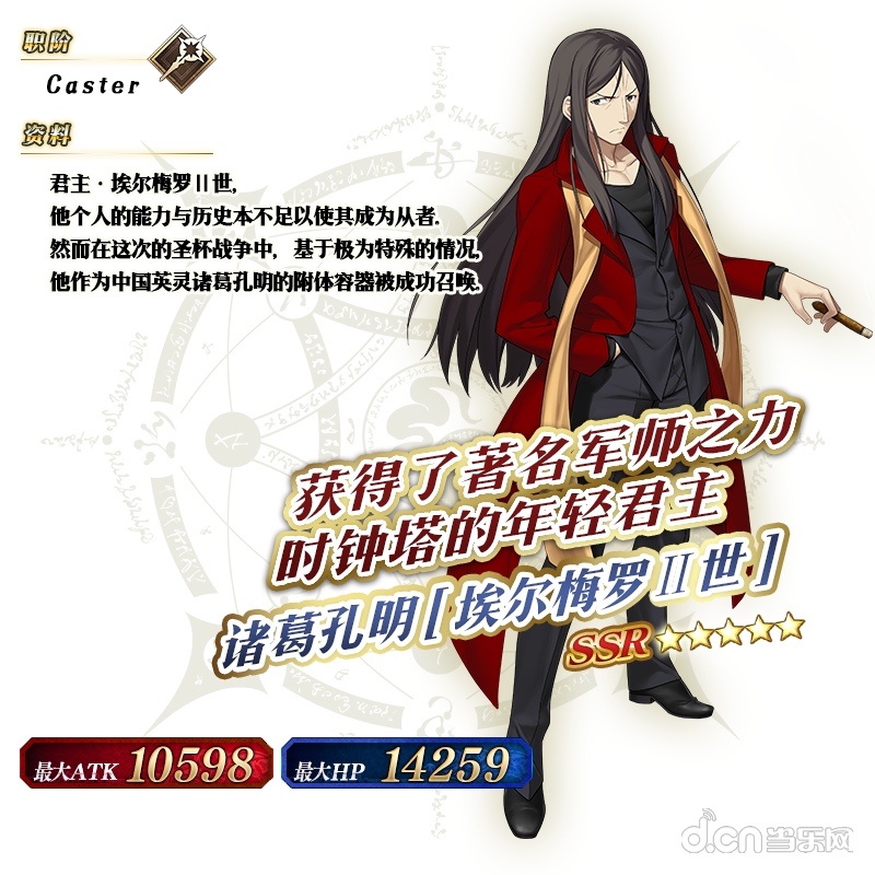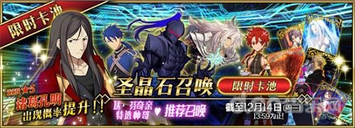 以「★5(SSR)诸葛孔明〔埃尔梅罗Ⅱ世〕」为首,共计5骑从者出现概率提升!
