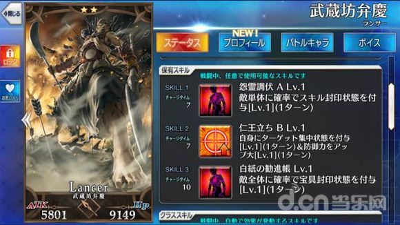 1.前期平均型从者,在获得优秀的从者后即可放置仓库。