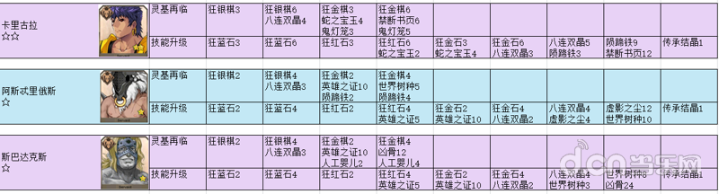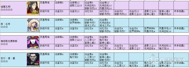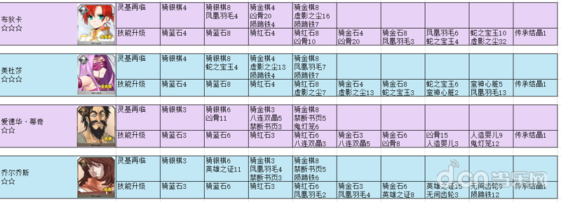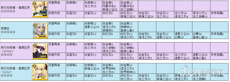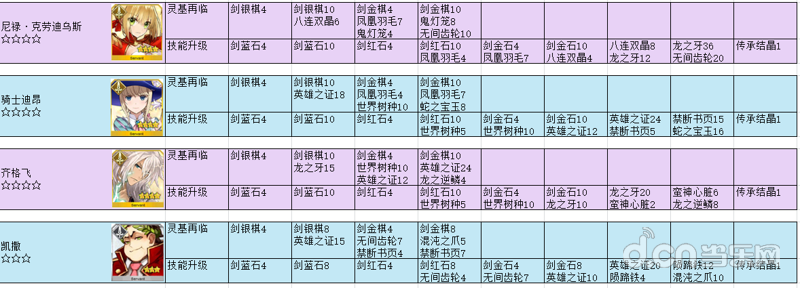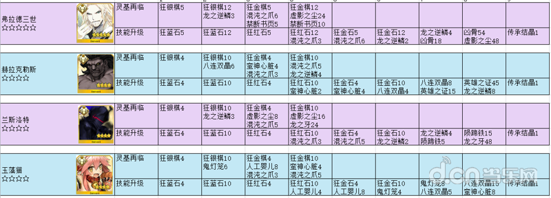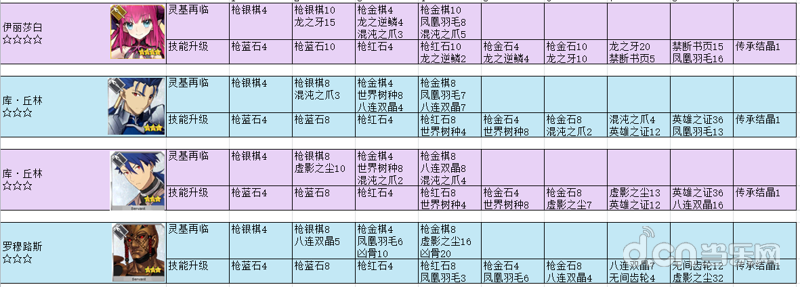 【资料整理】英灵进阶对应材料,材料对应英灵