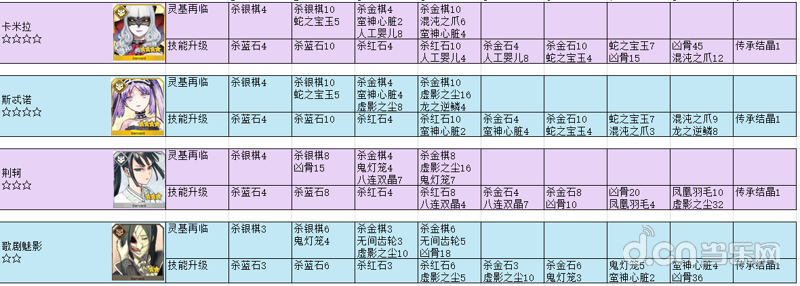 【第一部分】——杀阶灵基再临/技能升级材料: