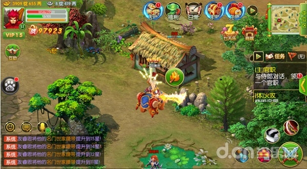 在场上想要取得胜利,火攻是相当重要的手段。在《傲世九重天》手游也设定了纯手动操作的火攻玩法。当玩家们等级达到21级后就可以领取火攻任务。玩家们前往中立区焚烧敌营,只要点击屏幕中心的火把按钮,就能把源源不断的火药砸向敌营的房屋,完成任务之后可以领取大量经验。该任务还可以邀请好友助攻,奖励将会大大提升。比起常规的任务玩法,《傲世九重天》手游的火攻玩法侧重操作,让玩家真正的体验“放火”的乐趣。