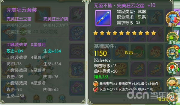游戏初期,装备的提升主要在装备的填充,装备的合成,装备星级的传承,玉石的镶嵌和套装装备。