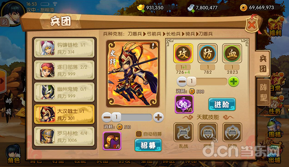 合理搭配所拥有的战略资源,组建一支有战斗力、有特点的部队。玩家既需要合理地对英雄进行职业的选择与属性的培养,还需要对兵团进行不断的升级和培养。本次测试中为玩家提供25种兵种,上千种搭配模式,极大地增强了玩家上阵的自由度与策略性。