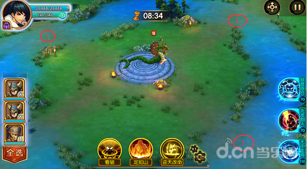 召唤:当勾蛇血量下降到较低的时候,它会在如下图的三个位置召唤出3个单位,这些单位属性很低,而且不会攻击,只会不断的朝勾蛇前行。